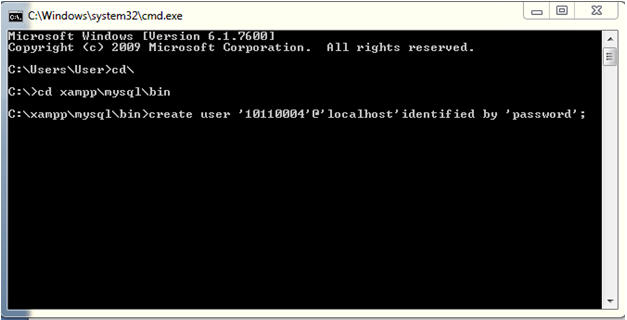 untuk masuk kedalam xampp\mysql\bin, setelah itu kita bisa membuat username